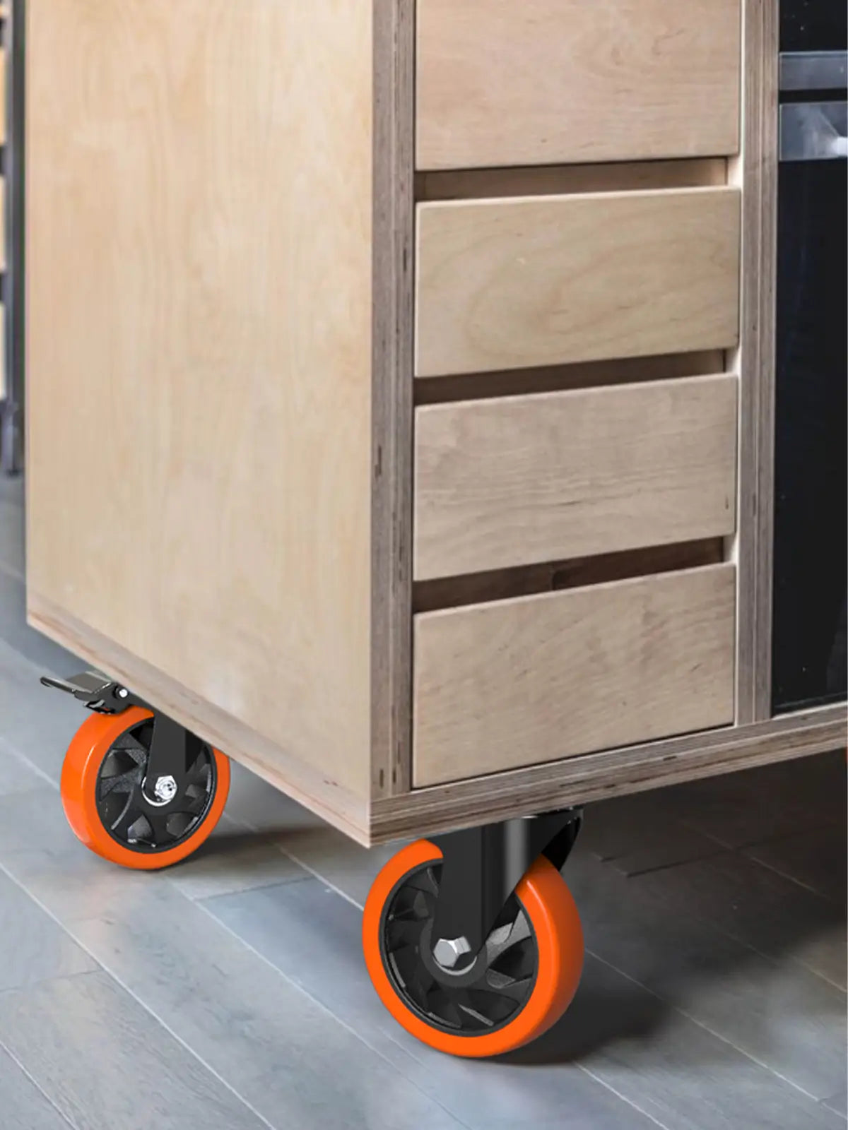 Casters are used to add mobility to furniture, equipment, and industrial systems. They are commonly installed on workbenches, carts, office chairs, storage units, and machinery to make items easier to move, reposition, and secure safely.