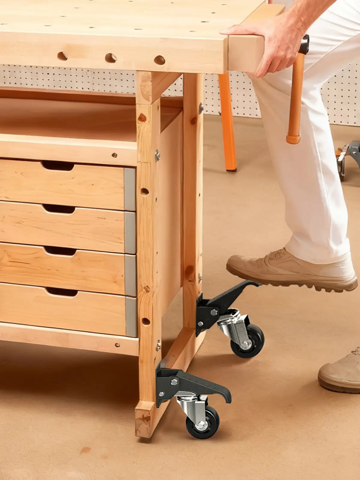 Retractable casters allow equipment to be mobile when needed and rest firmly on the floor when not in motion. They are commonly used on workbenches, machinery, and heavy furniture where stability is required during operation.