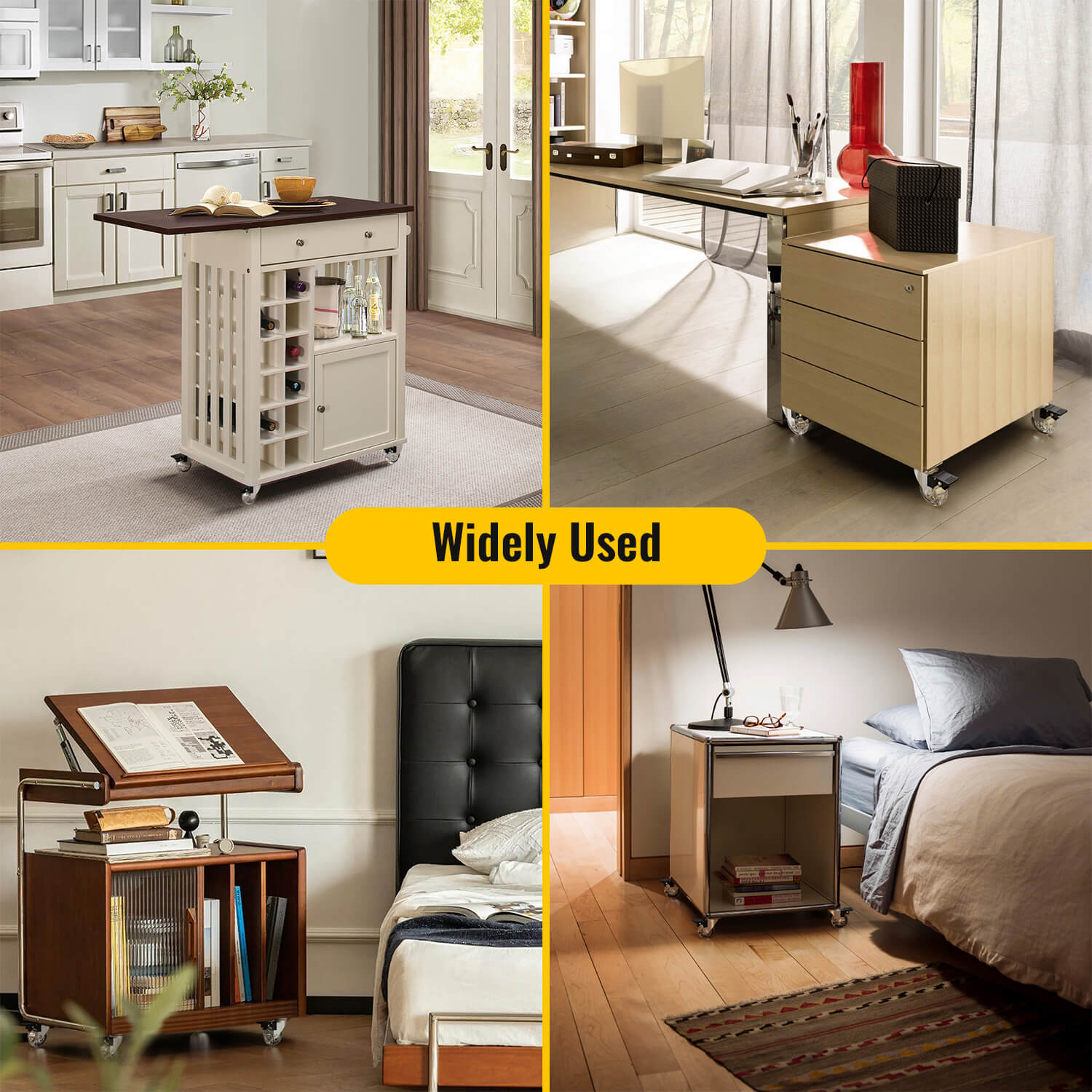 Under 3 inches in size, set of 4 in 600 lbs, combine space-saving design, but big on performance – our furniture casters offer both stem-mount and plate-mount configurations, providing flexible solutions for different furniture designs. Whether you need to replace old chair casters or add mobility to cabinets, these compact wheels deliver smooth movement and floor protection without bulk. Low-profile design fits under furniture with minimal clearance. Locking options.