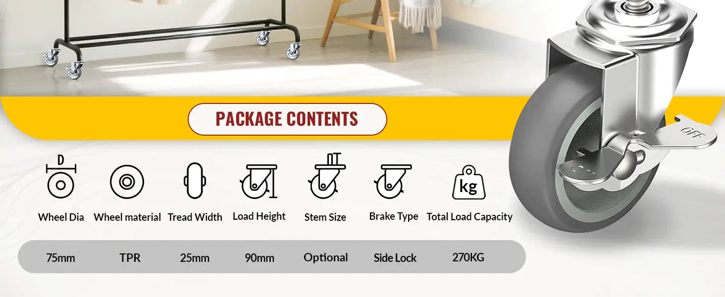 Supports up to 270 kg per set of 4 casters