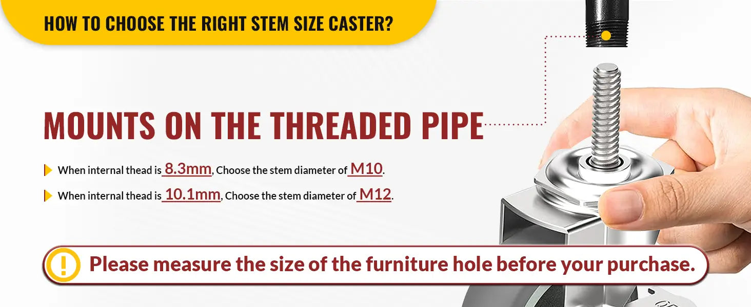 These casters use metric threaded stems (M10 / M12).